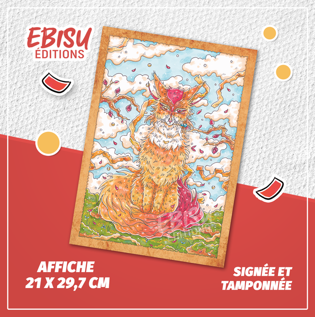 Offrez-vous l'affiche A4 du kitsune 狐 🦊 signée et tamponnée* pour décorer votre intérieur.